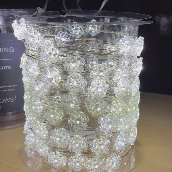 10m Snowflake LED string of lights with timer - battery operated
