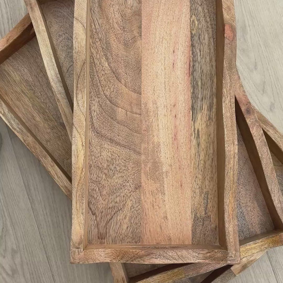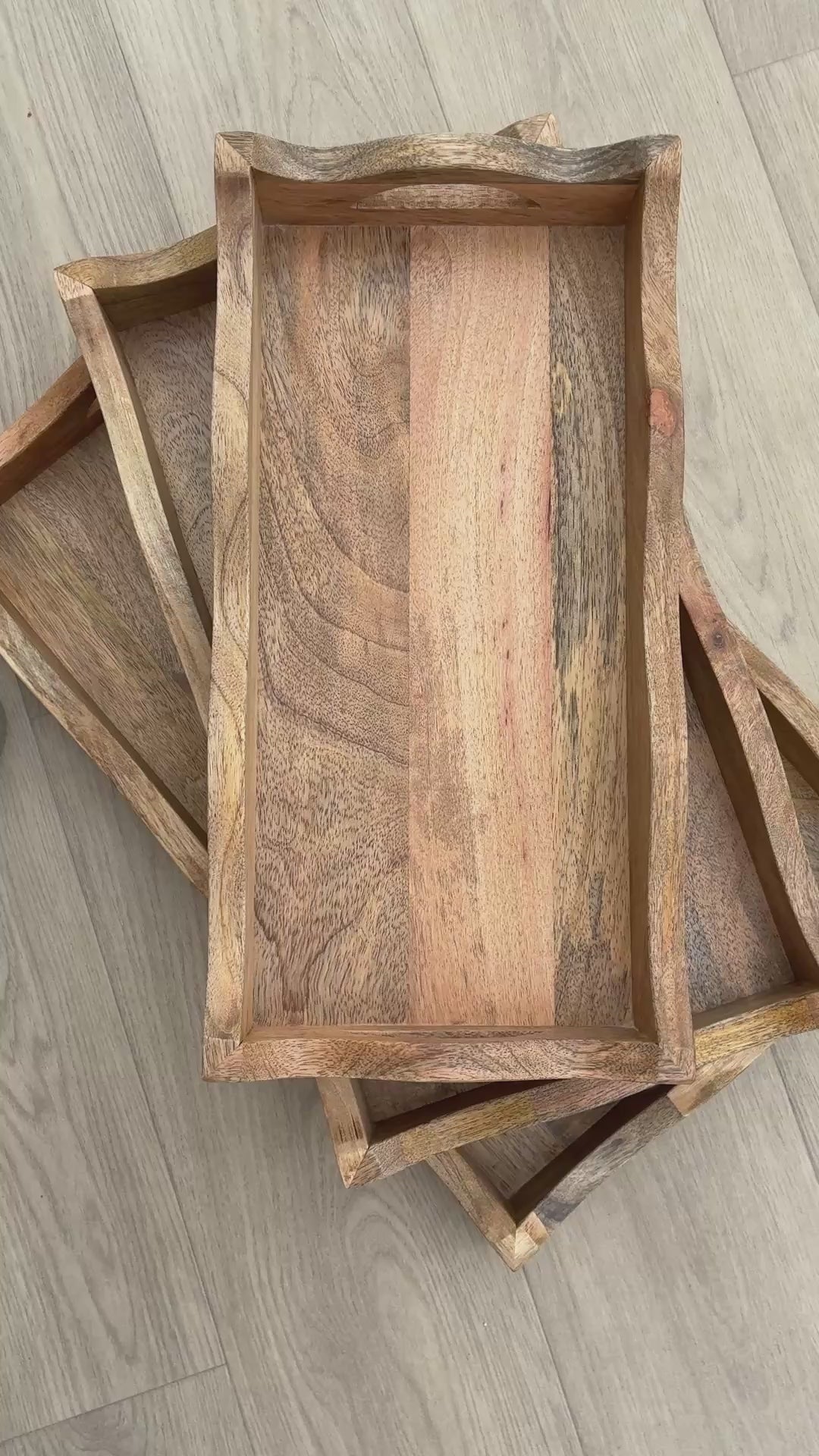 Solid Mango wood wave edge tray with cut out handles - 3 sizes